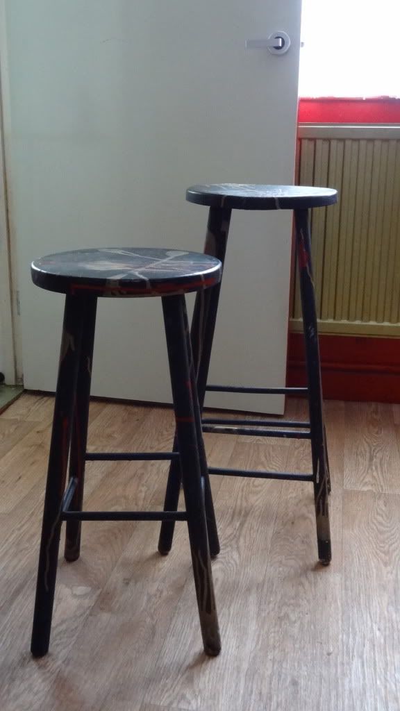 they are black with gold and red paint splashes so you may want to repaint them, but they are solid wood